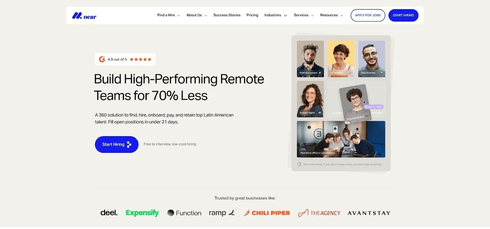 Near (HireWithNear) LatAm remote executive assistant service homepage screenshot